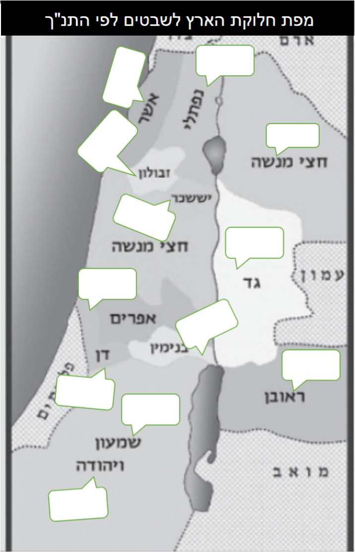 📄 נספח: מפת ארץ ישראל בחלוקת השבטים (על פי התנ"ך) עם 12 דגלים ריקים