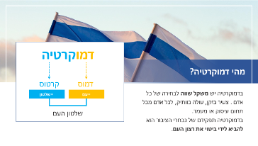 • היכרות עם משמעות המילה דמוקרטיה.