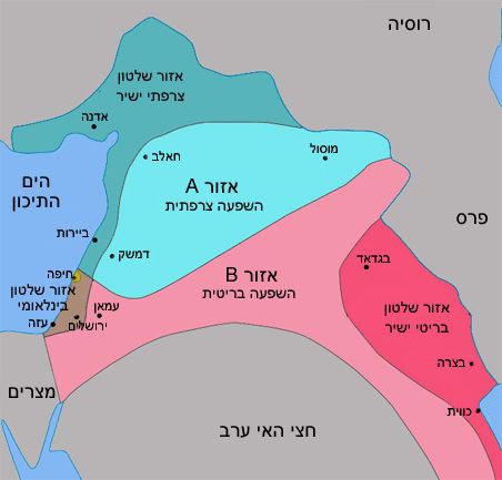 מפת הסכם סייקס פיקו המקורי משנת 1916