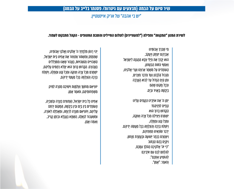 בתפילה לשלום חיילינו, מיגור האויב, רפואת הפצועים ותקופה של שלום ונצחון לעם ישראל
